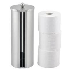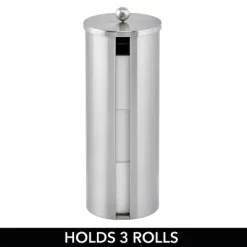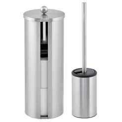 - SELF-CONTAINED: Brush sits in its self-contained holder; Toilet paper holder provides storage for 3 extra rolls of toilet paper