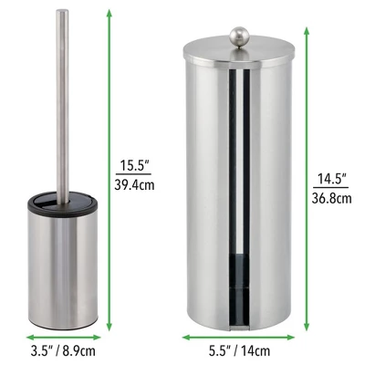 - THOUGHTFULLY SIZED: Toilet Brush Holder Measures 3.9″ diameter x 15.5″ high; Toilet Paper Holder Measures 5.3″ diameter x 13.9″ high