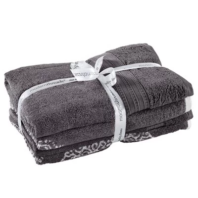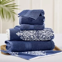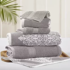 Beautify your bathroom with this Modern Threads six-piece towel set. This towel set features 100-percent cotton that’s luxuriously soft and becomes softer after every wash. These towels have a zero-twist weave that quickly absorbs water, and the geometric jacquard design adds a touch of elegance.