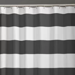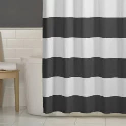 Invite easy style into your shower with the Zenna Home Porter Striped Fabric Shower Curtain. Horizontal grey and white stripes alternate on this shower curtain, lending a casual elegance that’s ideal for almost any bathroom. The 100% polyester shower curtain is durable and is machine washable for easy care (just wipe with a damp cloth to clean). It features 12 button holes at the top that allow easy installation with any shower hooks or rings. Pair the shower curtain with a protective liner for best results.