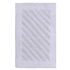 Designed to sit alongside your tub, shower, or sink and provide a comfortable, warm, dry spot for you to stand, the Knightsbridge rug will coordinate with infinite decorating styles. This opulent diagonal striped bath rug is made of 100% soft plush cotton and is super soft to the touch with a dense lush pile. Its reversible design is the ultimate in comfort while being extremely absorbent and functional. The beautiful array of contemporary colors will add an elegant look to any bathroom decor. Available colors: White, Ivory, Silver, Natural, Sage, Light Blue, and Stone. Measures: 24in x 40in