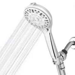 The 6-foot flexible metal hose adds convenience for easy shower cleaning and bathing children or pets.