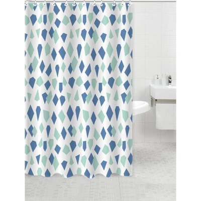 The SIDEWAYS shower curtain is made of 100% Polyethylene Vinyl Acetate which is Eco friendly for the environment. More importantly this curtain has no chlorine in the substrate with no odor. The colorful design is printed on a frosted background. This shower curtain features stamped buttonhole construction for use with shower hooks.
