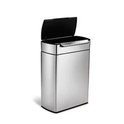 The simplehuman dual compartment touch-bar can has two large inner buckets and a wide opening that make it easy to sort your trash and recyclables in one place. It has a unique touch-bar that opens the lid with just a touch of your hand, a tap of your elbow, or a bump of your hip. And it stays open until you are ready to close it — ideal during food prep or while finishing up long chores.
