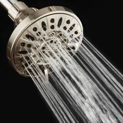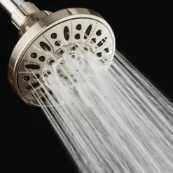 AquaDance High-Pressure Luxury 6-setting Slimline Shower Head with On/Off Pause Mode comes in a Brushed Nickel finish. With a modern 4-inch Slimline face design, it helps for higher flow velocity and efficiency with wider coverage. The 6 flow settings include Rain, Massage, Mist, and Pause, and two mixed modes. Anti-clog rub-clean jets for easy cleaning and preventing lime buildup. Angle-adjustable swivel ball joint and the showerhead’s high-powered 3-zone Precision Flow dial are superior for its water pressure, setting flow direction, and versatility. Convenient water-saving pause mode for an instant on/off flow control. Limited lifetime warranty with 100% hassle-free return policy directly from the manufacturer. Premium spot-resistant Brushed Nickel finish will not scratch, chip, or fade. The showerhead comes complete with the following: washer, plumber’s tape, and easy-to-follow instructions. Easy to install without the use of tools with just one hand-tighten connection, fits any standard shower arm.