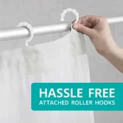 Smart Shower Curtains Hendrix View Fabric With Attached Hooks White – Zenna Home