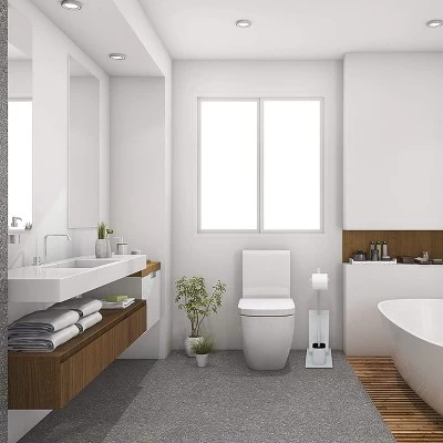 - SOLID STAND: A glass stand with sturdy rubber feet is not only a bathroom decoration fixture, but also provides secure footing for the roll and toilet brush holder.