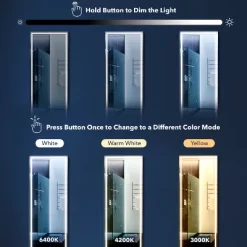 - Dimmable integrated LED lighting with touch sensor; choose white, warm white or yellow light