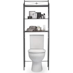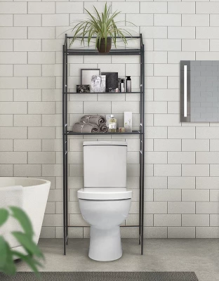 - Provides over toilet shelves and storage for all your bath essentials