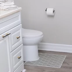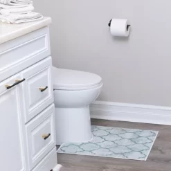 - Avoid Slips & Accidents – Keep your family safe all around the household. Make sure they don’t slip on the tiled floor by choosing bath mats with a non-slip backing like this toilet rug for bathroom.