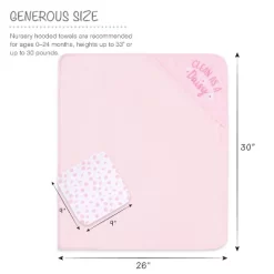 - Generous Size: Hooded towels (30″L x 26″W) and Wash cloths (9″L x 9″W)