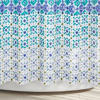 - Stylish printed shower curtain featuring an updated medallion design in a soothing array of gradated painterly blues with pops of green will add a refreshing touch to your bathroom retreat