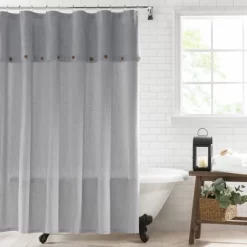 - Sold as a single shower curtain (header features 12 button hole); hooks/rings not included